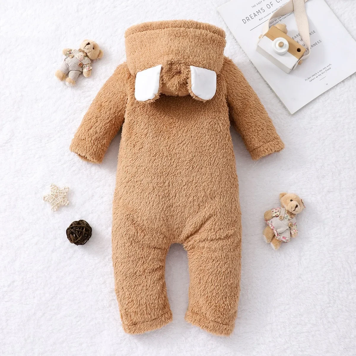 Newborn Plush Bear Jumpsuit — Hooded Romper for Autumn & Winter - BabyWorld